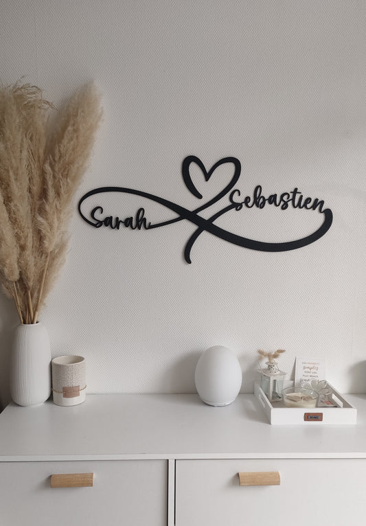 Décoration murale signe infini avec prénoms